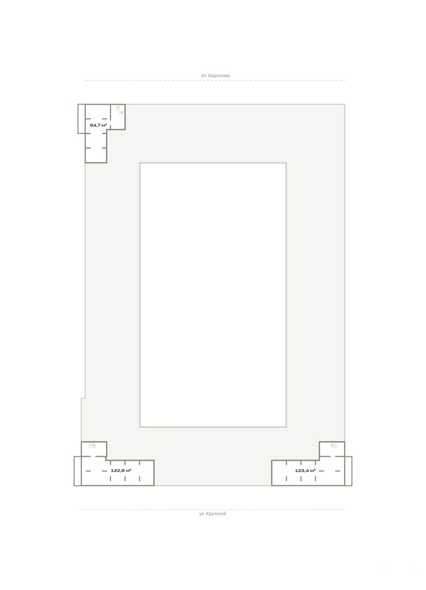 Главная ценность района — река. Ближе к ней мы расположили сомасштабные человеку дома, а на удалении от береговой линии — более высотные. Такое решение позволит примирить урбанизированный и природный ландшафт и создать комфортную проницаемую среду. Первая очередь состоит из четырех 17-этажных башен с подземным паркингом, зоной ритейла и зелеными дворами, закрытыми от машин. (AQID02548862)