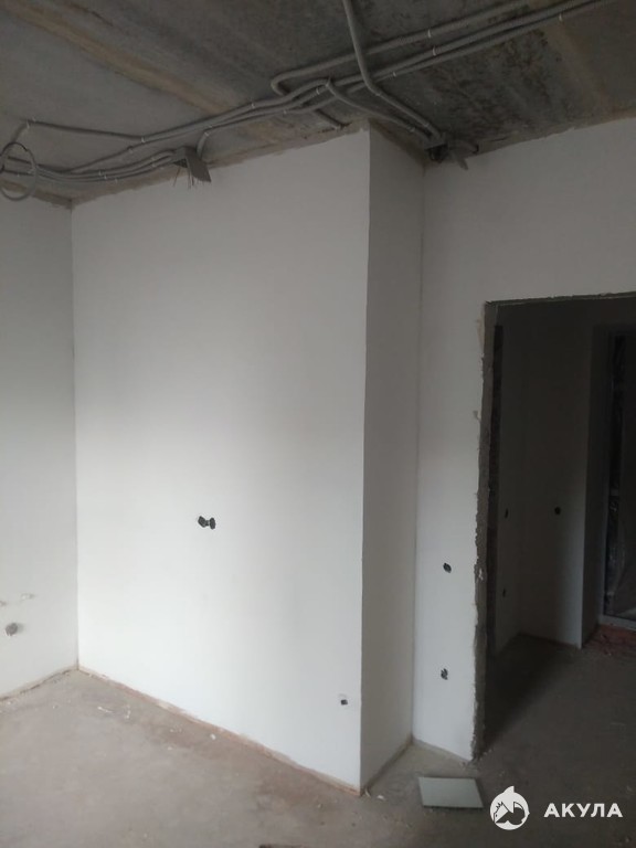В квартире выполнена чистовая отделка. Оштукатурены и выравнены стены, произведена стяжка пола, разводка электричества по квартире.