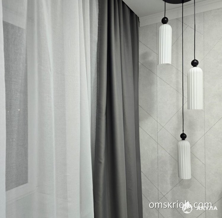 - Ровные стены, обои стилизованные под штукатурку, потолок натяжной, на полу уложен ламинат