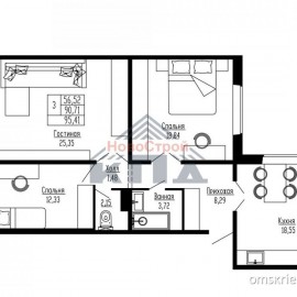 2-комнатная квартира с кухней-гостиной… 75/31/25 2-комнатная квартира площадью 74, 76 кв.м. вполне может считаться евротрешкой. Просторная кухня-гостиная, площадь которой более 25 кв.м., будет служить вам дополнительной комнатой, где вы будете проводить время за совместными...